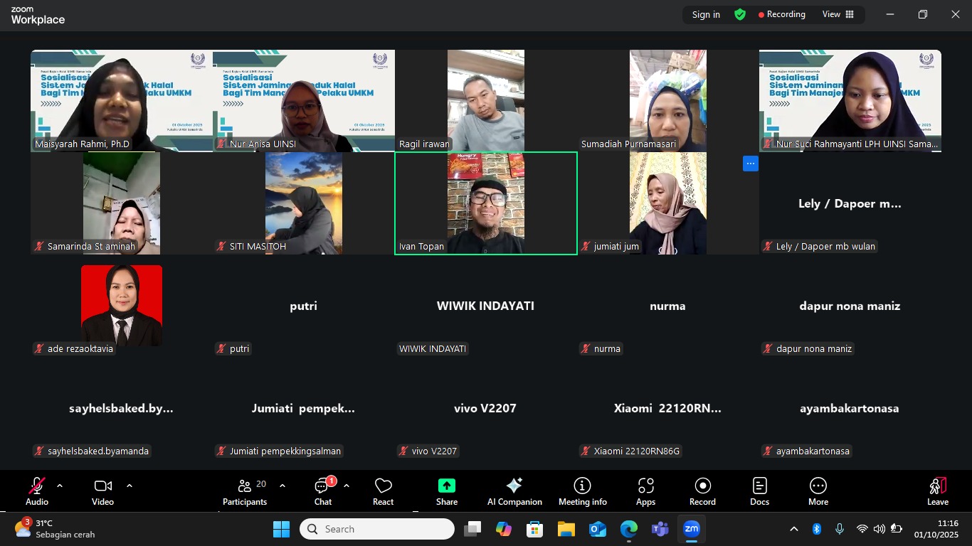 Kamis 18 September 2025 Pusat Kajian Halal (Pukaha) UINSI Samarinda