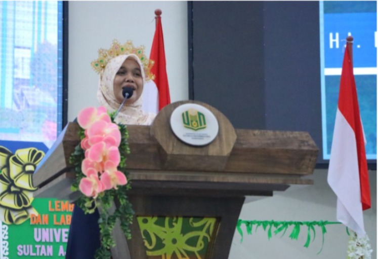Sambutan pertama disampaikan oleh Hj. Maisyarah Rahmi Hasan, Lc., MA., Ph.D., selaku Ketua LPH UINSI Samarinda. Dalam pidatonya, beliau menyampaikan apresiasi yang mendalam kepada seluruh pihak yang telah mendukung terwujudnya lembaga ini. Hj. Maisyarah Rahmi Hasan menegaskan bahwa LPH UINSI merupakan yang pertama dan satu-satunya di Kalimantan Timur yang dimiliki oleh perguruan tinggi, sehingga keberadaannya menjadi tonggak penting dalam penguatan layanan jaminan produk halal di daerah.
