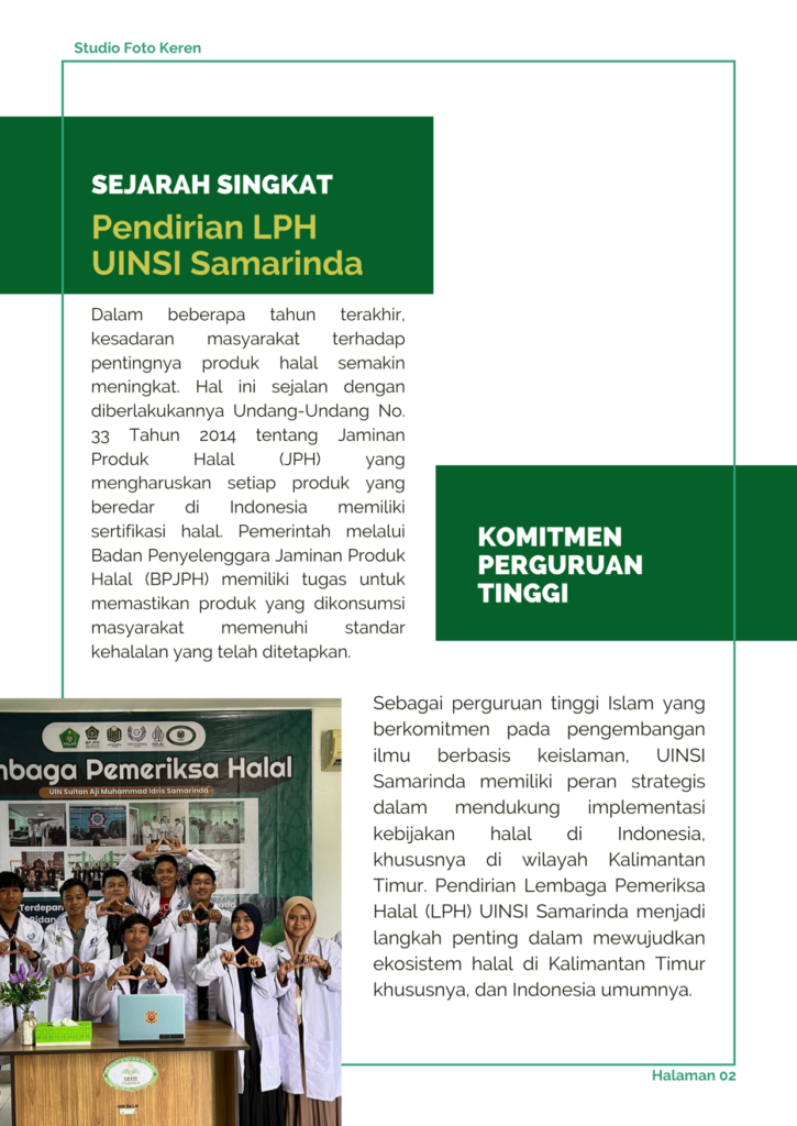 UINSI Samarinda, sebagai Perguruan Tinggi Keagamaan Islam Negeri (PTKIN), merespons kebutuhan tersebut dengan menginisiasi pendirian LPH yang terintegrasi dengan potensi akademik dan laboratorium yang dimiliki kampus. Gagasan ini mulai dirintis pada tahun 2021, ketika pemerintah mendorong perguruan tinggi untuk berperan aktif dalam ekosistem halal.