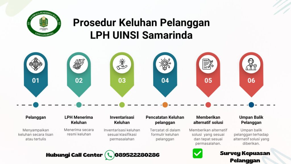 Sebagai lembaga yang berkomitmen pada pelayanan profesional, LPH UINSI Samarinda menyediakan mekanisme yang jelas dan transparan bagi pelanggan (UMKM, pelaku usaha, maupun mitra) untuk menyampaikan keluhan, masukan, atau keberatan. Prosedur ini bertujuan agar setiap keluhan dapat ditangani secara cepat, tepat, dan adil.