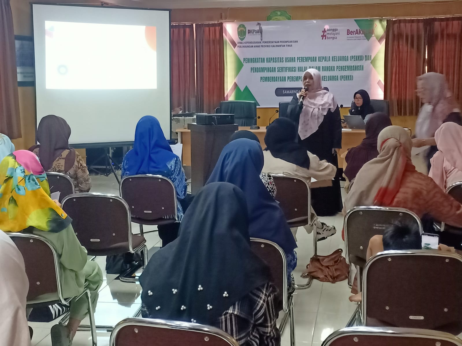 Dinas Kependudukan, Pemberdayaan Perempuan dan Perlindungan Anak (DKP3A) Kalimantan Timur menggelar Sosialisasi yang bertema” Peningkatan Kapasitas Usaha Perempuan Kepala Keluarga (PEKKA) dan Pendampingan Sertifikasi Halal dalam Rangka Pengembangan Pemberdayaan Perempuan Kepala Keluarga (PEKKA) di Kota Samarinda pada Kamis 17 April 2025. Acara ini berlangsung di Aula Kantor DKP3A yang bertujuan untuk membantu para perempuan pelaku usaha untuk mendaftarkan produk usaha mereka sertifikat halal guna meningkatkan kesadaran dan kemampuan dalam menerapkan sistem jaminan halal melalui self declare serta untuk membantu mereka dalam memasarkan dan meningkatkan penjualan produk.