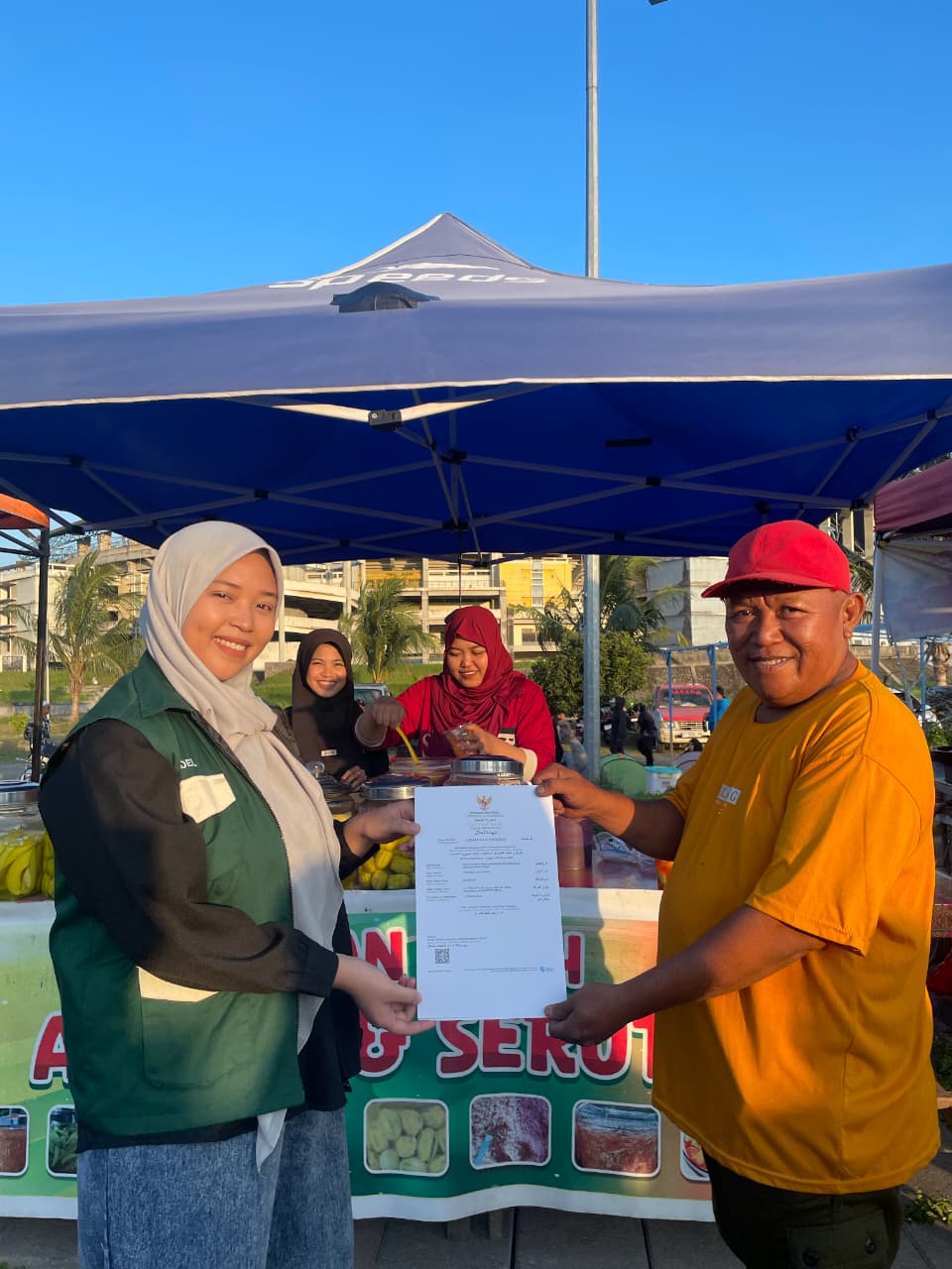 Dalam upaya memperluas jangkauan produk halal dan mendorong peningkatan daya saing pelaku usaha mikro, kecil, dan menengah (UMKM), Pendamping Halal LP3H UINSI Samarinda menyerahkan sertifikat halal kepada pelaku UMKM di kawasan Wisata Belanja Stadion Palaran, Minggu, 26 April 2026.